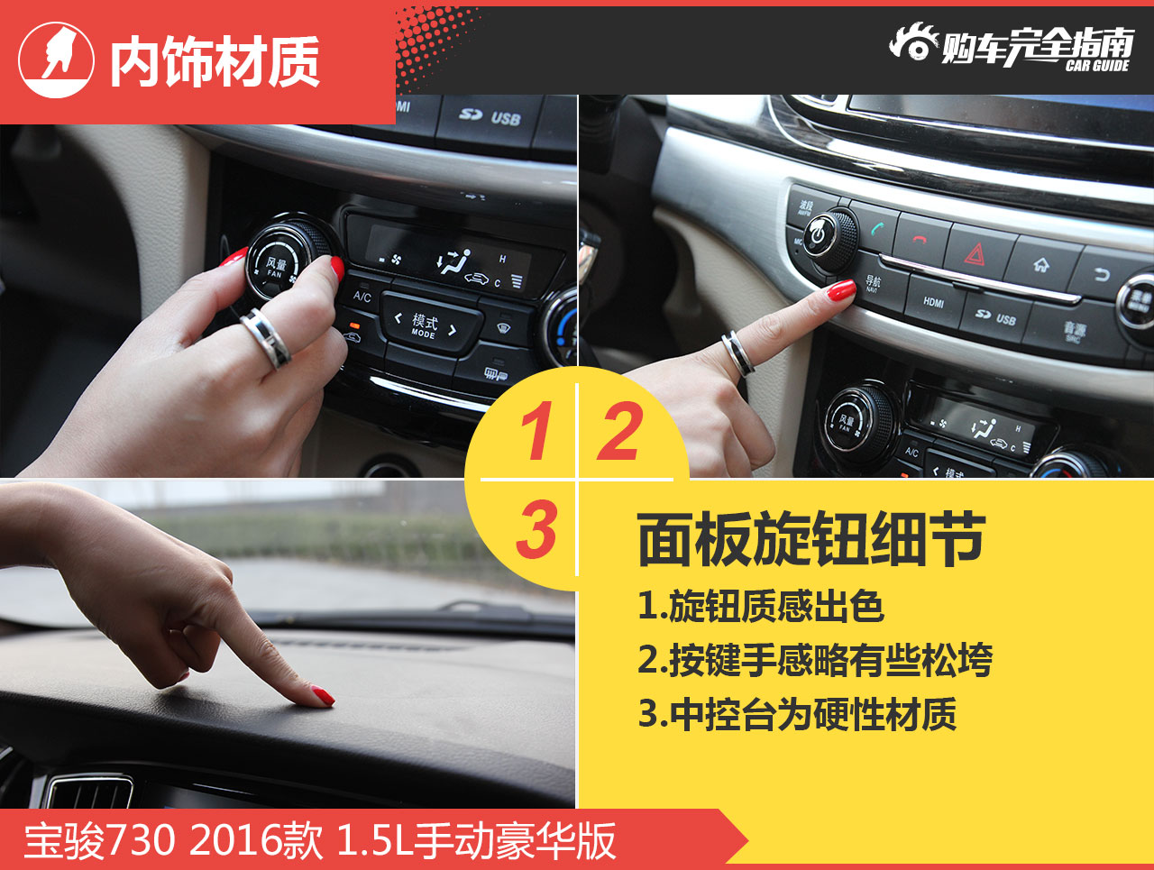 整体来说,宝骏730在内饰拼装工艺上还是保持了较高水准,各项接缝较为均匀。但在用料上,不得不说其软性材质还是比较少的,也就是该价位车的常规水平。