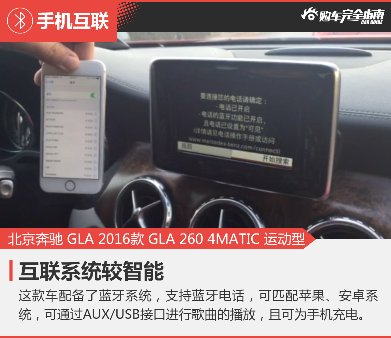 在手机互联上,他可以轻松连接苹果和安卓系统的手机,蓝牙电话使用正常,而且配置了AUX/USB接口,得到0.5分加分。总计2.5分。