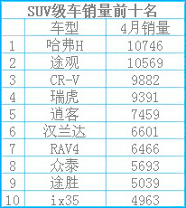 2011年4月,SUV车型销售12.41万辆,环比下降11.92%,同比增长18.91%。与上月相比,本田CRV下降较快,途观增速较为明显。4月,上述五个品牌共销售5.20万辆,占SUV销售总量的42%...【详细】