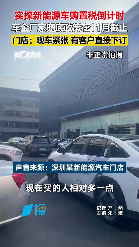 实探新能源车购置税倒计时 车企厂家兜底政策在11月截止 门店:现车紧张 有客户直接下订|一探