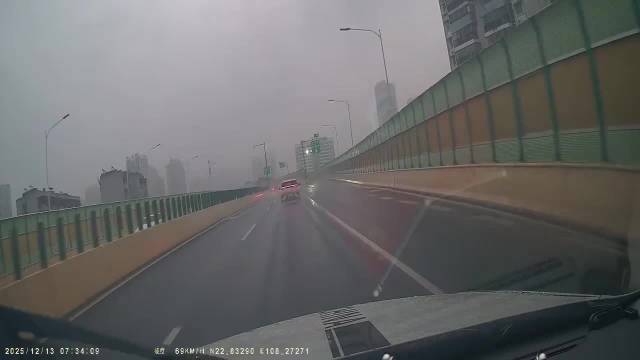 南宁快速路新能源汽车撞防撞栏直接离去