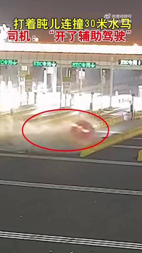 新能源车辅助驾驶中司机犯困连撞30米水马