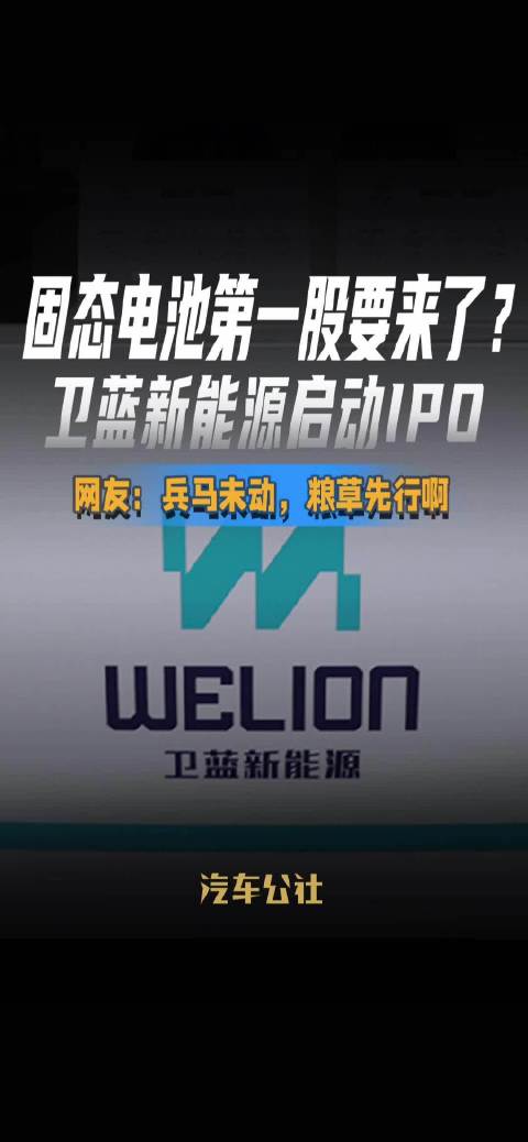 固态电池第一股要来了? 卫蓝新能源启动IPO 网友:兵马未动,粮草先行啊
