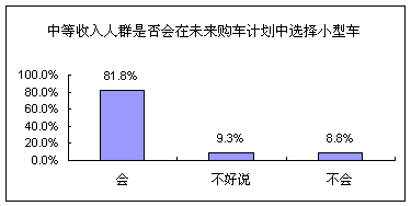在对家庭月收入在5000-8000元的中等收入人群调查中,81.8%的消费者明确表示,在未来的购车计划中,将会考虑购买小型车。毕竟,无论是国家政策的出台,还是原油价格的飙升,诸多客观因素都决定了小型车将是多数消费者理性的选择。在国际小型车风行的趋势下,小型车将不再是“低档车”的代名词,尽管目前车市的小型车,不排除其在性能、动力等方面存在一定弱势,但随着各大厂商对小型车市场的重视,甚至宝马、奔驰等知名国际汽车企业纷纷进军小型车领域,都将给小型车注入了更高的技术含量和更强的生命力。