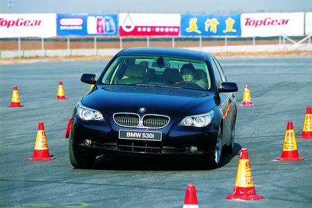 宝马轿车的宗旨就是给驾车人带来充分的操控乐趣,7系都不例外,何况是行政级的5系。以前试过很多次530i,这次也是轻车熟路,轻松而又愉快地体会它韧性十足的悬架和精准的转向特性。完成模拟紧急避让障碍物的麋鹿试验它可达到72km/h,这其中也有电子系统在帮忙。它装备了动态稳定控制系统(DSC,功能相当于ESP),可以很清晰地体验到在极限将要出现时它及时地介入,仪表盘上DSC灯一闪,你就知道它在纠正打滑的车轮了。那么,关掉它?对,因为CTS没有这项装备,可以让它们更公平地比一下。成绩当然会降低,不过在同样的测试中速度也达到了68km/h。