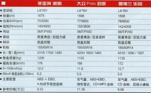 从三款车的价格上看,同是最低配置的车型,派朗为8.53万元,乐风为9.98万元,劲取则要比派朗高出2万多元,为11.18万元,这个差值在小型车中已经是相当大了。不过一分钱一分货,经过对比之后,劲取在很多方面还是表现得较为成熟,也难怪当初德国大众设计POLO的初衷是想替代甲壳虫,派朗作为南京菲亚特近期的唯一新车,肩上的担子很重,也许应该再使出一些绝招来吸引消费者。