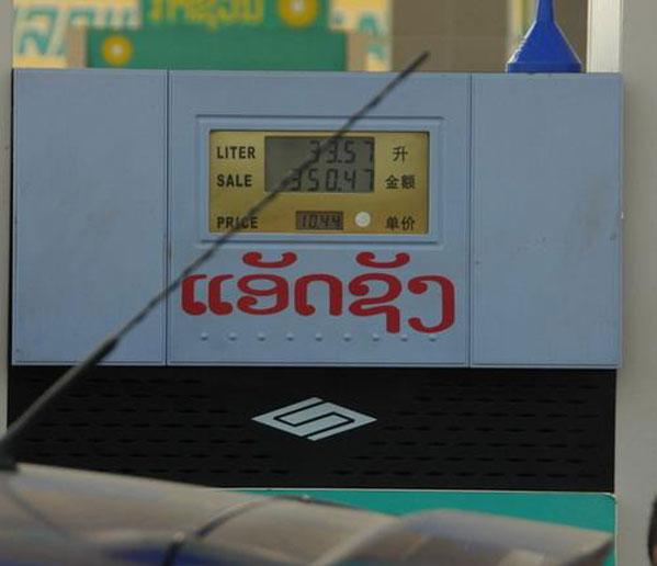 老挝的车用油只分汽油和柴油两种,不分油号。汽油全部进口,以壳牌为主,质量很高。价格约为8元一公升 试驾图集