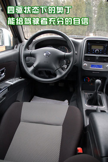 奥丁的越野性能勿庸置疑,与帕拉丁相同的前双叉臂独立悬架,后五连杆螺旋弹簧悬架系统,底盘结构稳定,驾乘感觉稳重。在公路行驶状态下,奥丁并没有表现出超出一般车型的优势,不过当下了公路以后,它的表现让我们欣喜。