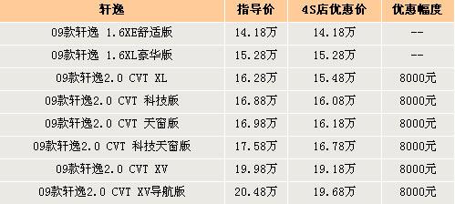 在9月份完成升级的09款轩逸,升级后不久便有了较大幅度的优惠。笔者从东风日产经销商处获悉,09款轩逸目前有8000元的现金优惠,而老款轩逸目前在广州各经销商已经没有库存,在售的就只有09款轩逸。09款轩逸现车充足,有兴趣的消费者不妨到店了解一下。