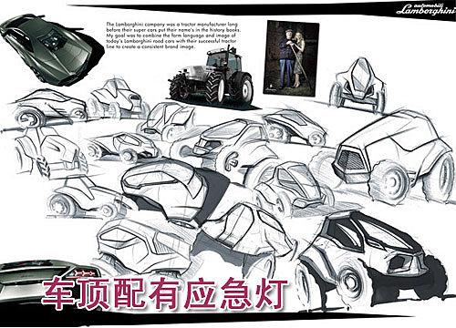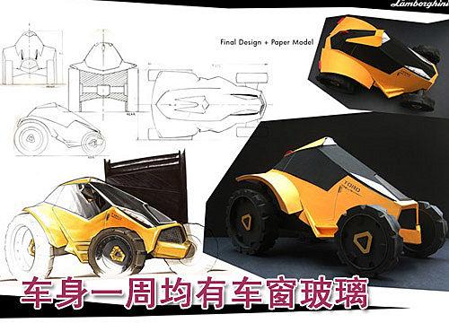 设计者在设计这款概念车的时候目的是让该车不仅具有多功能性,还不乏越野性能,同时还具有兰博基尼拖拉机的极其野蛮的特点,以及兰博基尼跑车充满棱角的外观设计。