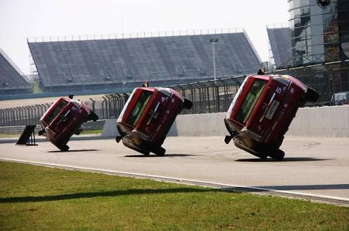在过往的汽车特技秀中,车手将一辆车倾斜45%仅靠前后双轮单侧行进已经足以让第一次看到的观众们大呼过瘾,而在凯迪拉克Vday赛道征服日上,观众们将看到难度翻了数倍的双车侧行,第三车高速穿越的“屋顶侧行”场面。