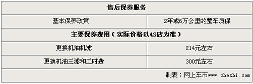 雅绅特享受2年或6万公里的整车质保,首次保养的公里数为5000公里,首保免费,以后每隔5000公里保养一次,小保养更换机油和机油滤清器费用为214元左右,大保养更换三滤的费用大约300元左右,保养费用还是相对便宜的。