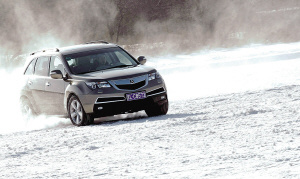 在冰封的净月潭湖面上,2010 MDX凭借其更加优化升级的SH-AWD超级四轮驱动力自由控制系统、3.7升V6 VTEC发动机和6速手自一体变速箱为我们展现了其良好的操控性能,以及应对冰雪路面的灵动性。在结了冰的湖面上进行蛇形绕桩和紧急变线等项目测试,有一种并不常有的快感。在此,不得不提一下2010 MDX的SH-AWD系统。