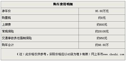 ¡¡¡¡ÒÔA8L 3.0FSIºÀ»ªÐÍΪÀý£¬µÚÒ»Äêгµ±£ÏÕ·ÑÓôóԼΪ28108Ôª£¬¹ºÖÃ˰Լ81880Ôª£¬¼õÈ¥¹ºÖÃ˰ºóÈ«°ü¼Û·ÑÓÃÔ¼98.80ÍòÔª¡£¾ßÌå·ÑÓüûÏÂ±í£º