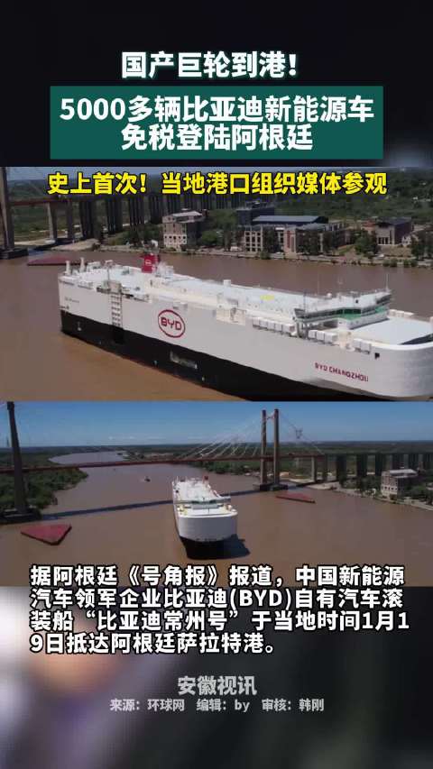 国产巨轮首抵阿根廷,5000辆比亚迪新能源车免税到港