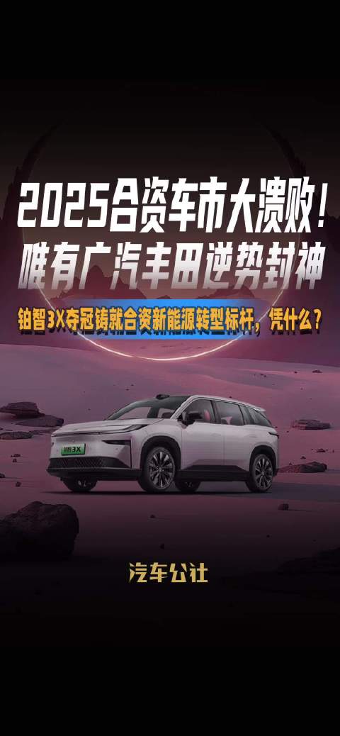 2025年广汽丰田铂智3X逆势夺冠,成合资新能源标杆