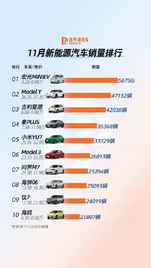 销量王回归!11月新能源汽车销量TOP10稳居第一强势归来