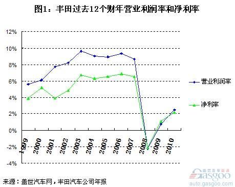 VI计划实施后的2005-2007财年,虽然丰田营业收入于2007财年升至历史最高峰——26.3兆亿日元,但其营业利润率维持在9%左右,最高时(2006财年)达到9.3%,未超过2003财年的水平;而其净利率维持在6.6%左右,最高时(也是2006财年)达到6.9%,创其至少近10几年以来的新纪录。