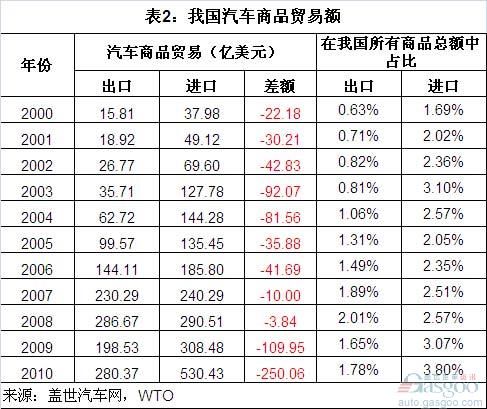 但2009年汽车商品贸易逆差剧增至109.95亿美元,2010年进一步增至250.06亿美元。