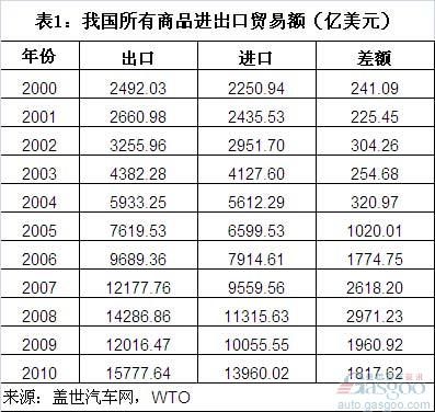 2000-10年我国汽车商品进出口贸易简析(上)