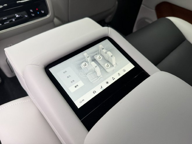 在后排座椅中央扶手中集成一块7英寸的控制屏,可以调节后排娱乐屏、空调、座椅等功能。
