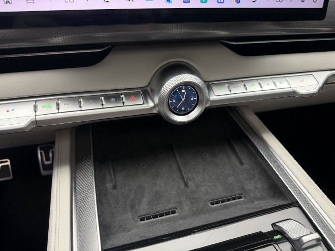 中控屏幕下方设计有一排物理按键,主要是操作空调系统使用。中间搭配一个1.39英寸液晶触控时钟,可实现表盘切换和一键启动功能,这也是坦克700的一个标志性设计。