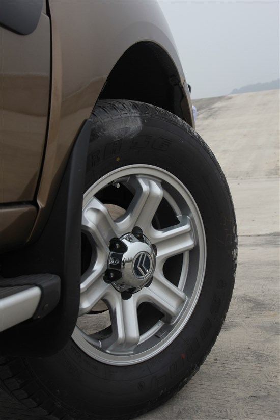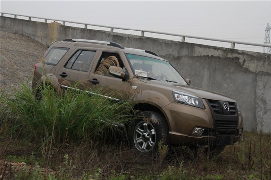 在试驾阶段,我首先选择了一辆搭载来自长城2.8T柴油发动机的车型,点火之后,车内的噪音和振动控制得非常不错,令人难以察觉这是一辆柴油车型,这也是采用成熟技术平台的优势之一。离合器结合点并不十分清晰,好在柴油发动机的低速扭矩足够,起步并不困难。通过变速器排挡杆,手心可以感觉到来自于传动系统的振动,这样原始而直接的交流反而令我感到踏实。循环球式助力转向机构令转动方向盘成为了一件轻松惬意的事情,无形之中减轻了驾驶员的工作强度,带来的副作用就是隔绝了驾驶员同路面的交流,但是当行走在坑洼不平的非铺装路面或者布满鹅卵石的滩涂上时,驾驶员一定会庆幸具有这个简单可靠的装置。这也是为什么众多专业越野车仍然配备这套转向机构的原因。由于采用了越野车的大梁式底盘,配合高达240mm的离地间隙,我可以毫无顾忌地高速通过一些沟沟坎坎的路面,锐度V3表现相当令人信服,唯独后排乘客可能对于刚性十足的钢板弹簧有些抱怨。