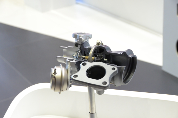 新浪汽车讯 本届上海车展上,霍尼韦尔展出了代表着日前技术领先的VNT™可变截面涡轮增压器。该增压器可以明显地的提高发动机扭矩水平,但是由于汽油发动机排气温度较柴油发动机高出很多,所以考虑到耐久性的问题,目前该涡轮增压器仅匹配在柴油发动机上。