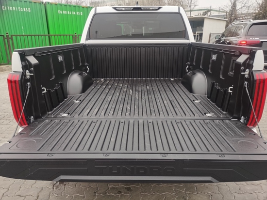 丰田坦途车尾的造型同样粗犷,竖直的尾灯设计相比头灯而言也更加简单,宽大的防擦包围以及银色护板的加入提升了车尾的层次感。在货箱的车牌悬挂处还设计有一个踏板,便于上下货箱。