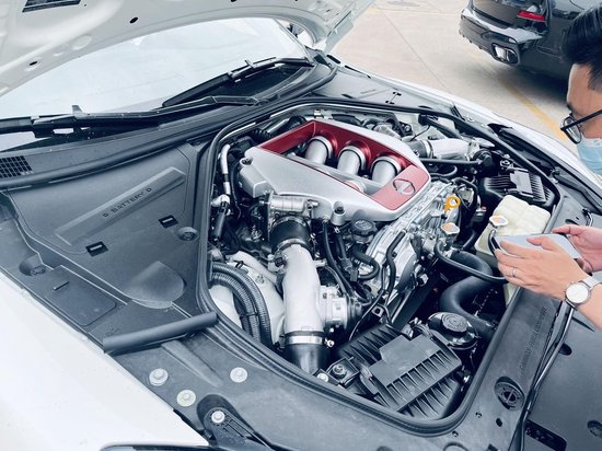 IHI涡轮增压器安装在发动机的每个组上。受赛车技术的启发,排气歧管优化了涡轮法兰连接点,可以在不接触排气歧管的情况下进行更轻松的维修和潜在调校。为了确保扭矩上升时没有涡轮滞后,GT-R采用了高精度电子控制。