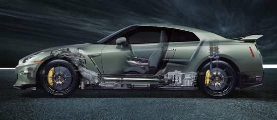 日产在GT-R开发的每个阶段都挑战了惯例。日产GT-R不是大型、沉重、不断口渴的发动机,而是由精密工程的双涡轮增压3.8升V6发动机驱动的,它产生了巨大的565马力和同样巨大的630牛米扭矩。它建造时还考虑到了强度——从封闭甲板气缸体到梯子框架结构——以增加支撑。