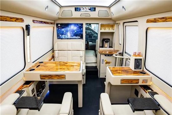 丰田考斯特改装商务车在内饰上的改装项目有很多。座椅,地毯,窗帘,冰箱,隔断,影音系统,办公桌,秘书席等等,内饰上的每一步哦我们都可以根据自己的需要进行设计,打造一款我们专属的私人高级座驾。
