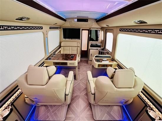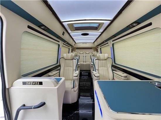 丰田考斯特改装商务车,从座椅的改装上来说,对于驾驶席以及副驾驶的座椅改装我们可以将座椅加大加宽加厚,同样也可以增加桃木扶手。丰田考斯特改装的每一步都是为了增加乘驾人员的舒适度。对于乘客席的座椅改装,我们同样也有着不同的选择,真皮座椅织物座椅亦或是丝绒座椅,我们根据自己的选择进行设计,其实最值的一说的就是360度可旋转的首长席座椅。这一款座椅在满足大家舒适的需要的时候可以随心旋转面向不同的角度。这样的效果更能够方便乘坐人员在乘车旅行中的交谈。