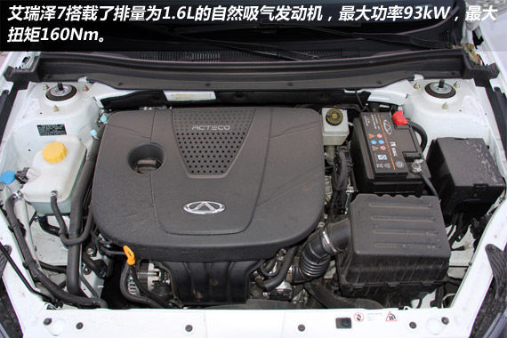 奇瑞艾瑞泽7搭载了一台1.6L自然吸气发动机,最大功率93kW,最大扭矩160Nm。变速器上,奇瑞为艾瑞泽7准备了5速手动变速器和CVT无级变速器。这台1.6L自然吸气发动机包含了可变正时气门技术,在燃油经济性方面有着不错的表现,我们试驾的这几天里,城市综合路况下综合油耗仅为8.6L。