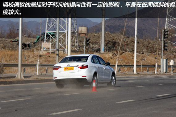 在18米绕桩测试中,能够感受到艾瑞泽7的底盘整体感较强,但由于搭载了CVT无级变速器,加上整体调校偏软的悬挂,桩间加速的效果并不明显,当车身发生侧滑时,ESP系统会及时的介入,修正车身轨迹。