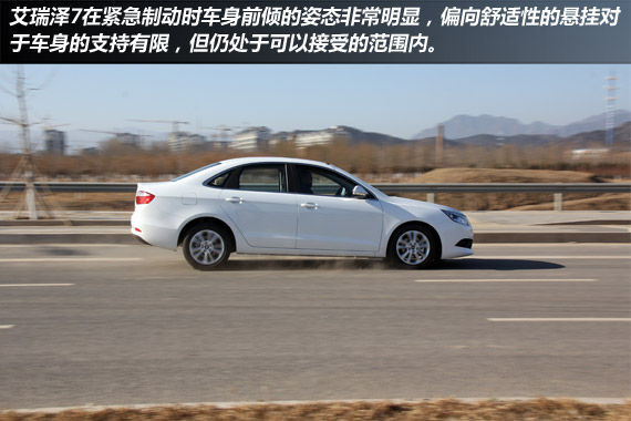 8分艾瑞泽7在0-100km/h加速测试中得到了12.04秒的成绩,而100-0km/h制动测试中得到了40.31m的成绩,距离40m的门槛非常接近。