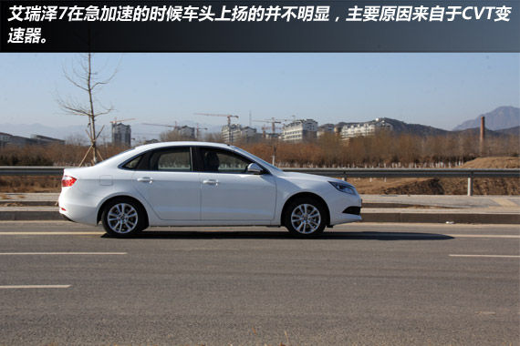 艾瑞泽7在0-100km/h加速测试当中得到了12.04秒的成绩,1.6L自然吸气发动机的动力通过CVT无级变速器之后有一定的衰减,如果更换成普通的自动变速器或者是5速手动变速器,相信这个成绩还能再提高一些。